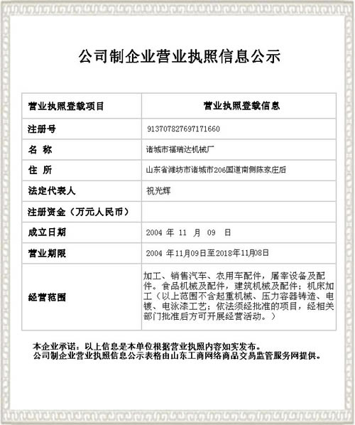 | 現(xiàn)有中,高級技術(shù)人員數(shù)名有多年的設(shè)計與制造畜禽宰殺機械的理論和經(jīng)驗 | |||||